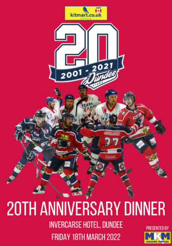 The Kitmart Dundee Stars are excited to reveal that we will be hosting a 20th Anniversary Dinner at the Invercarse Hotel, Dundee on Friday 18th March 2022